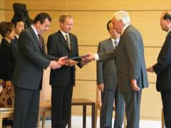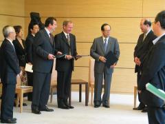04/07/2008 - The BRT co-Chairmen temporarily absented themselves from the second day of the annual meeting so that they could submit the 2008 set of BRT Recommendations to Yasuo Fukuda (PM of Japan), Hugh Richardson, the Ambassador of the Delegation of the European Commission to Japan (for the European Commission) and to Philippe Faure, French Ambassador to Japan (representing the EU Council Presidency).