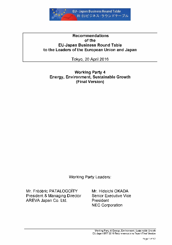 18th BRT Annual Meeting – Tokyo, 20 April 2016:"EU & JAPAN – TAKING STRIDES TOWARDS A COMMON SUSTAINABLE FUTURE"