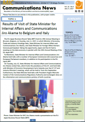 Issue No.4, Vol. 28 of Communication News (the 27 July 2017 edition of the MIC newsletter) had a 3 page feature on the "Results of Visit of State Minister for Internal Affairs and Communications Jiro Akama to Belgium" (pages 1-3)