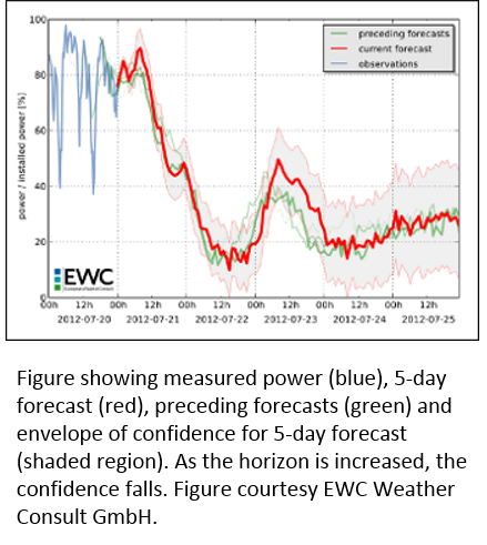 In renewable energy, utility operators use forecast models to predict energy fluctuations over a future time horizon to account for operating reserves, and protect grid infrastructure from instabilities. These models are of limited accuracy and as a result operating reserves may be inadequate or over-provided, and grid instabilities may be caused by under or over production of power. Forecasting enables operators to manage varying levels of power generation and operate equipment efficiently and traders to make marketing decisions. However, it has been reported by an operator that over the 5 year period 2008-2013 wind power failed to meet forecast 58% of the time.