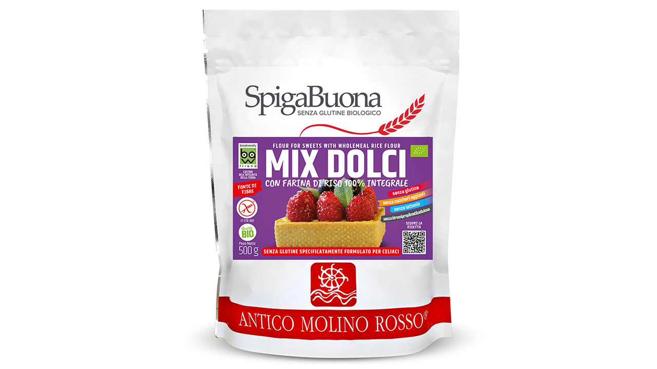 Organic italian flour for gluten free sweets. It is a mix certified made with brown rice flour, without added sugar, lactose free. You can do cakes, biscuits, sweets, pastry for people with coeliac disease and gluten intolerance, free of chemical thickeners, added sugars or deglutinated wheat. Our gluten free flours with the brand Spigabuona (www.spigabuona.com) are offered on the market with innovative packaging equipped with an airtight and resealable zip on all available formats: 500 g, 2.5 kg and 15 kg. This mix is really good, easy to use and excellent because it is digestibility, unique flavors and varieties of tasty.