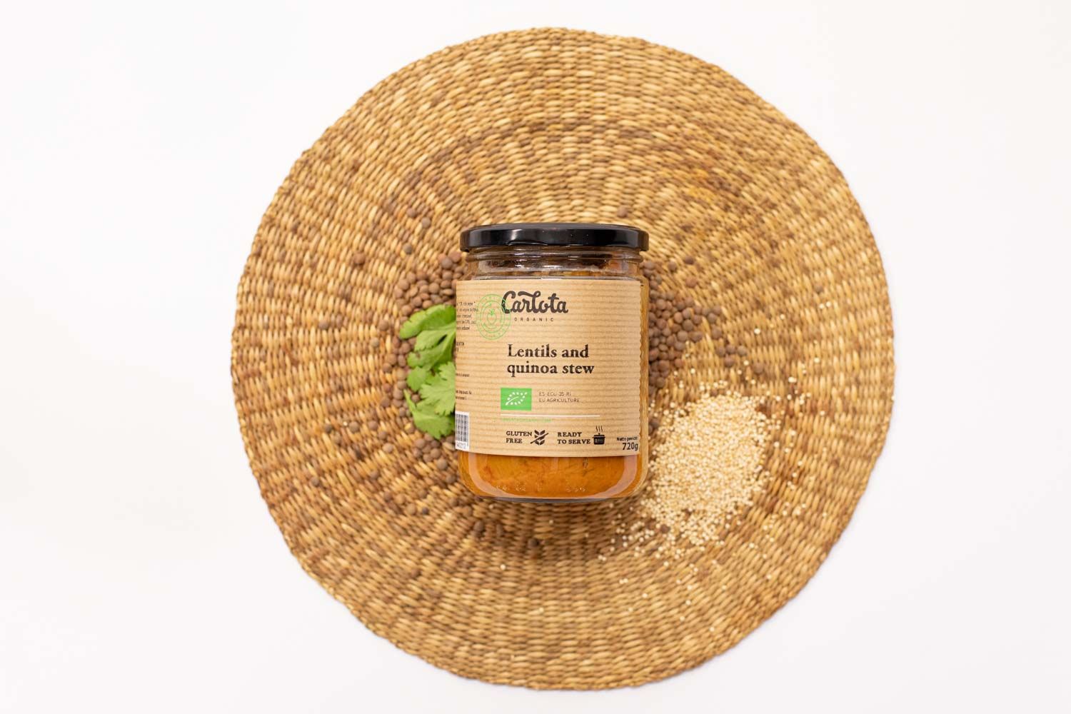 We are Carlota Organic, a Spanish brand specialized in Vegan and Organic ready meals canned in glass jars. We offer a very complete range of stews, soups, quinoas and meat alternatives. Cooked only with plant-based ingredients and extra virgin olive oil.