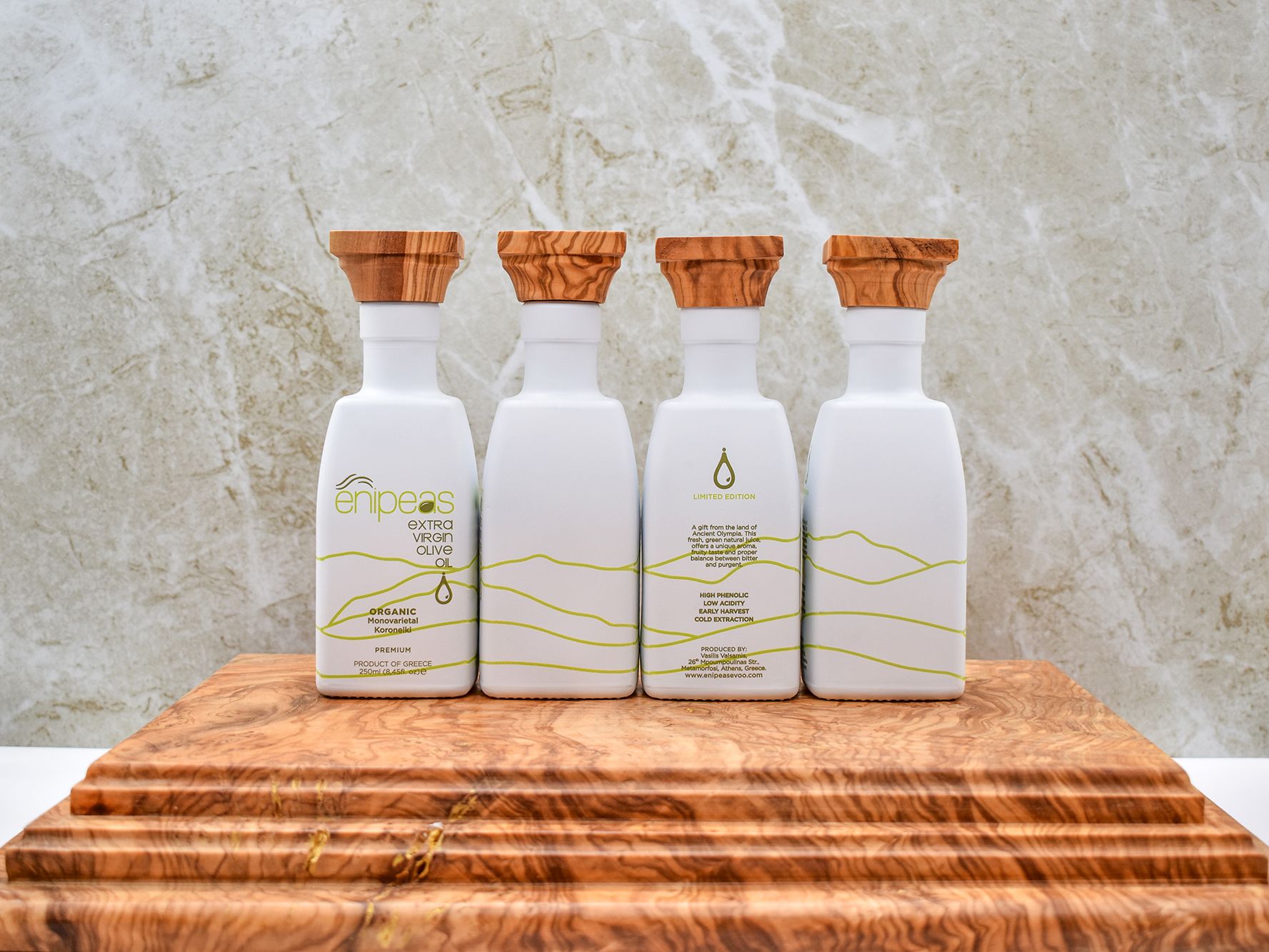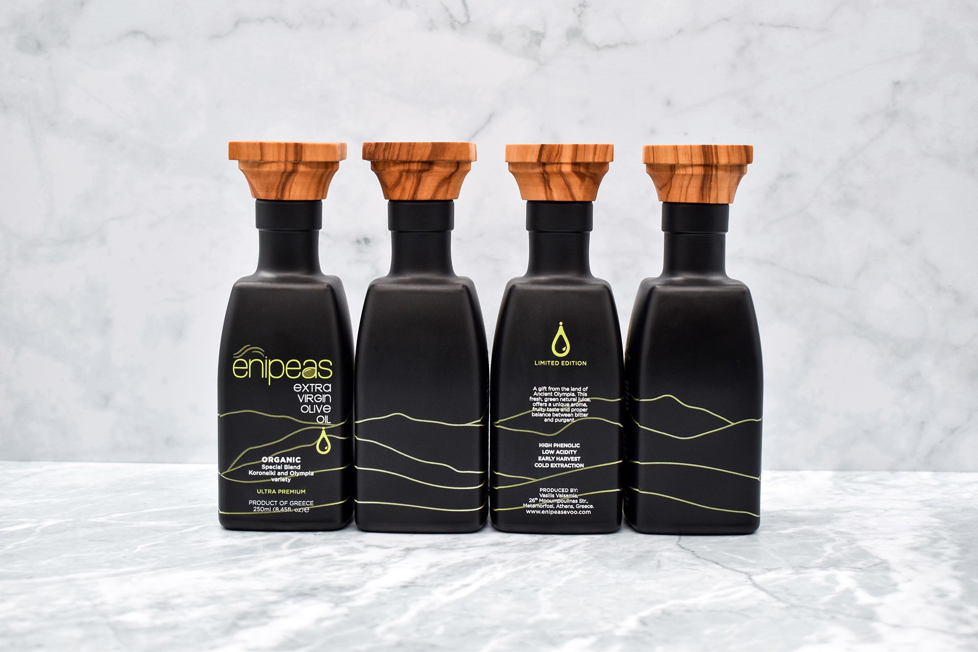 The Enipeas EVOO Ultra Premium Organic Special Blend is a high-end, organic extra virgin olive oil crafted from two exceptional Greek varieties: Koroneiki and Olympia. The blend balances Koroneiki’s fruity intensity with Olympia’s distinctive, phenolic-rich character, creating a complex EVOO for both demanding consumers and fine gastronomy.