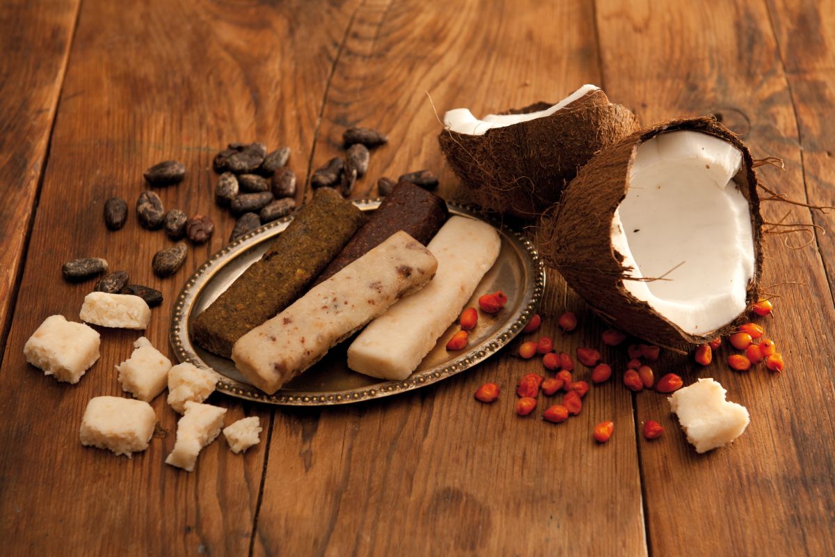 Available in three flavours: pure coconut, cocoa (with cocoa nibs), and sour cherry.