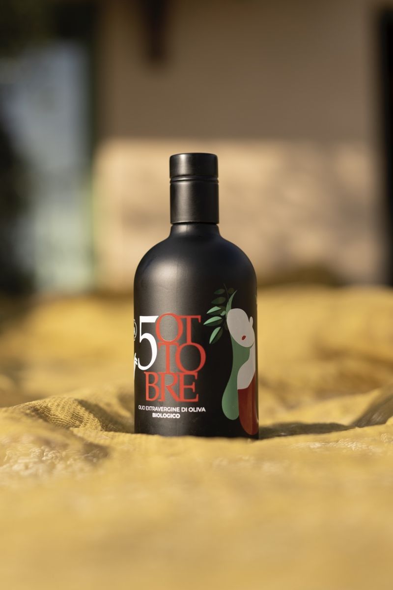 5 October is the label with which we sell our blend produced from the earliest harvested olives. It is the most exclusive organic extra virgin olive oil in our collection, made from several cultivars harvested and pressed by October 5th. The prevailing varieties are the earliest in terms of ripening, there are Leccino and Raggia, as well as Mignola, Frantoio, Orbetana, Coroncina and Pendolino.