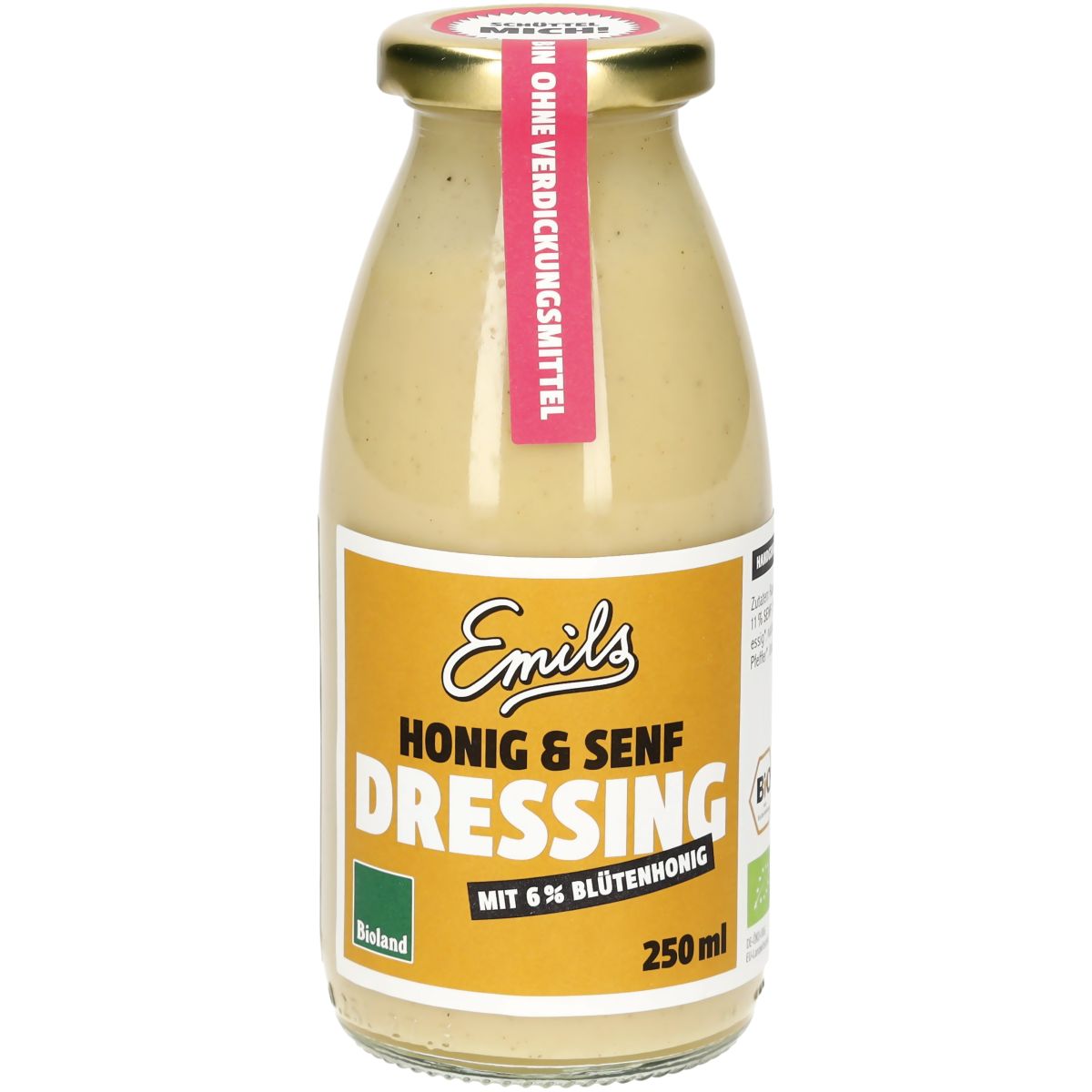 The dressing separates in the bottle — that is physics, not a defect. Just shake briefly before use. It is unpasteurised, because flavour does not benefit from heat treatment.
