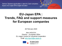 EU-Japan EPA: trends, FAQ and support measures for EU companies Ms Aiko Higuchi, Director - European Office, EU-Japan Centre for Industrial Cooperation |