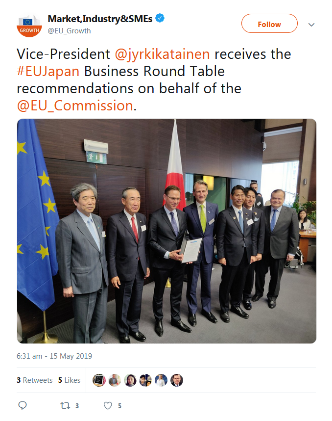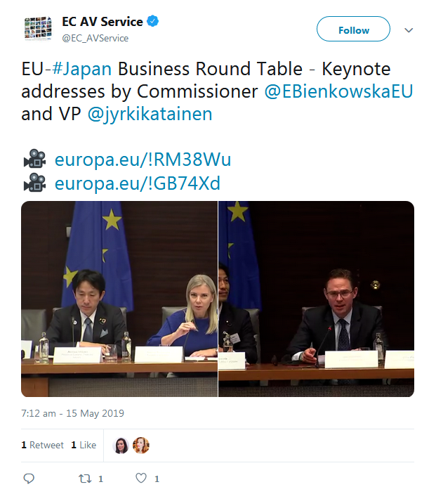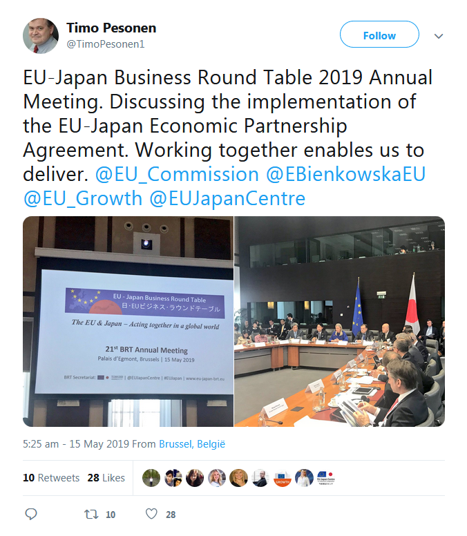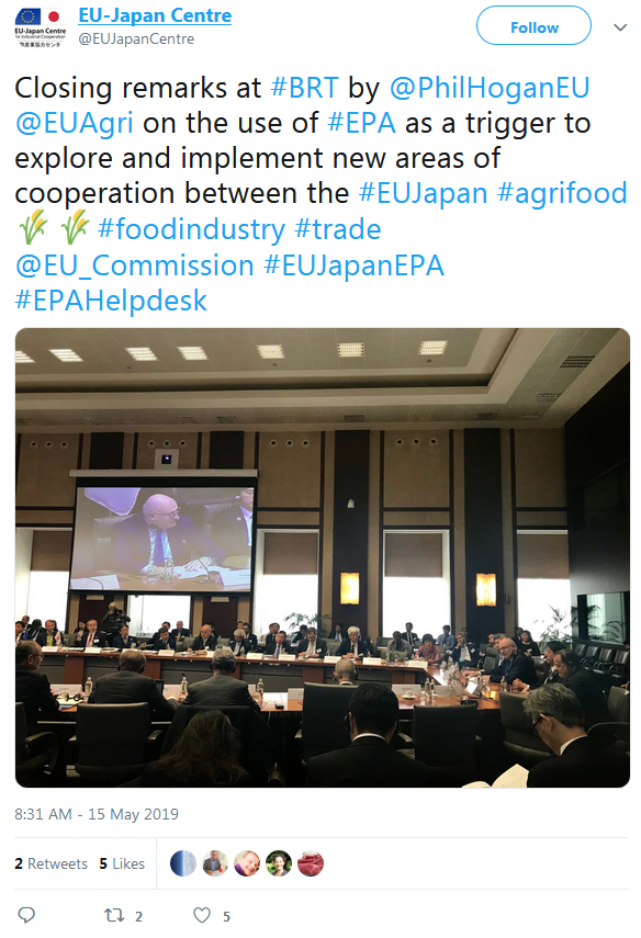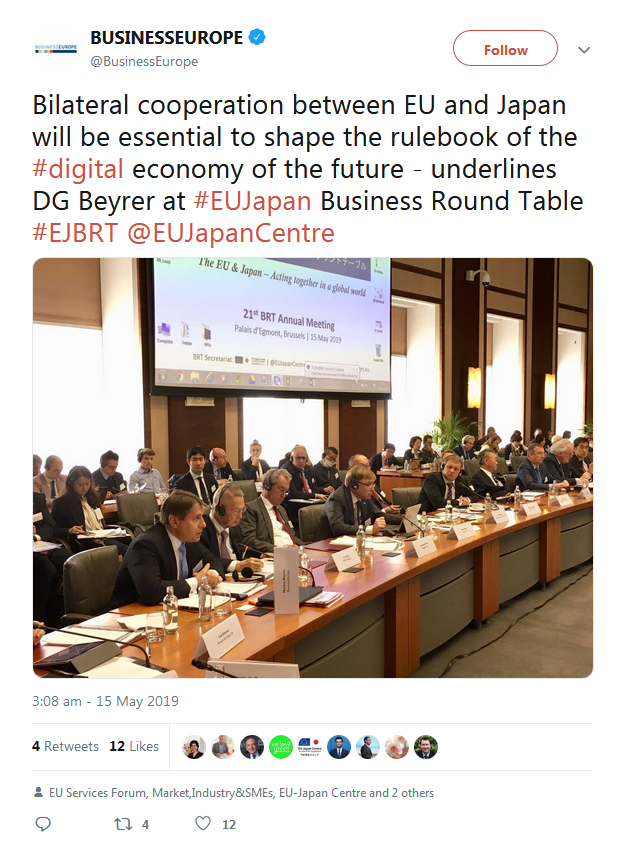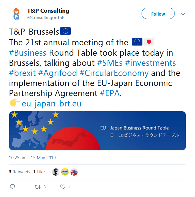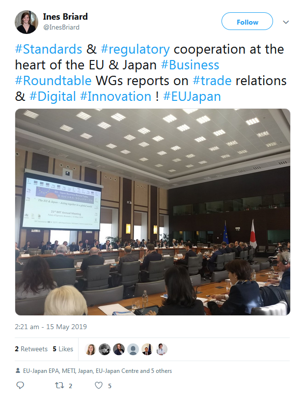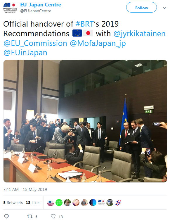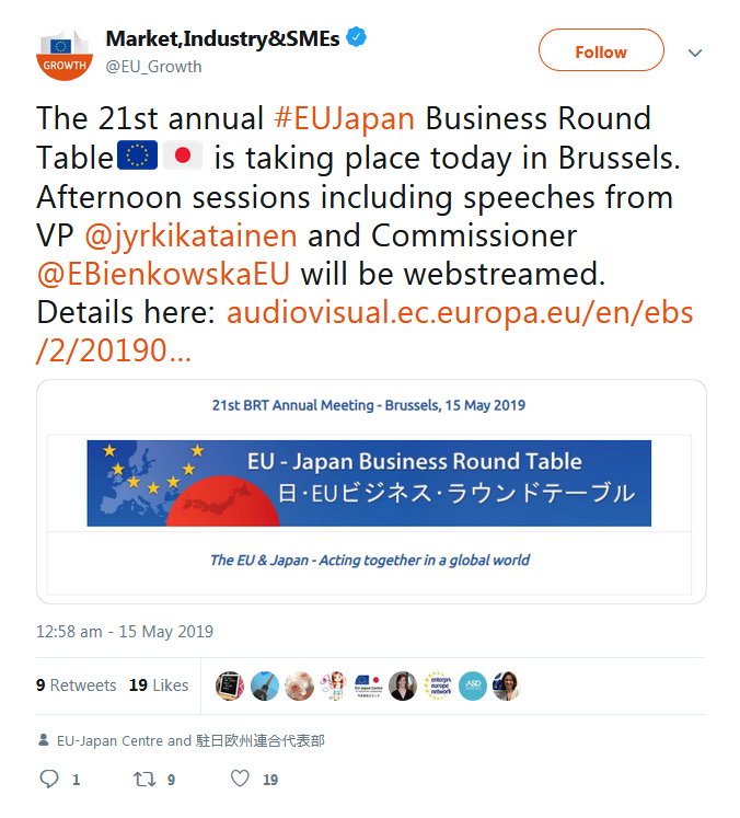 A selection of the tweets sent by the European Commission, Government of Japan, BRT member companies, the BRT Secretariat at the EU-Japan Centre for Industrial Cooperation, and others can be found below.