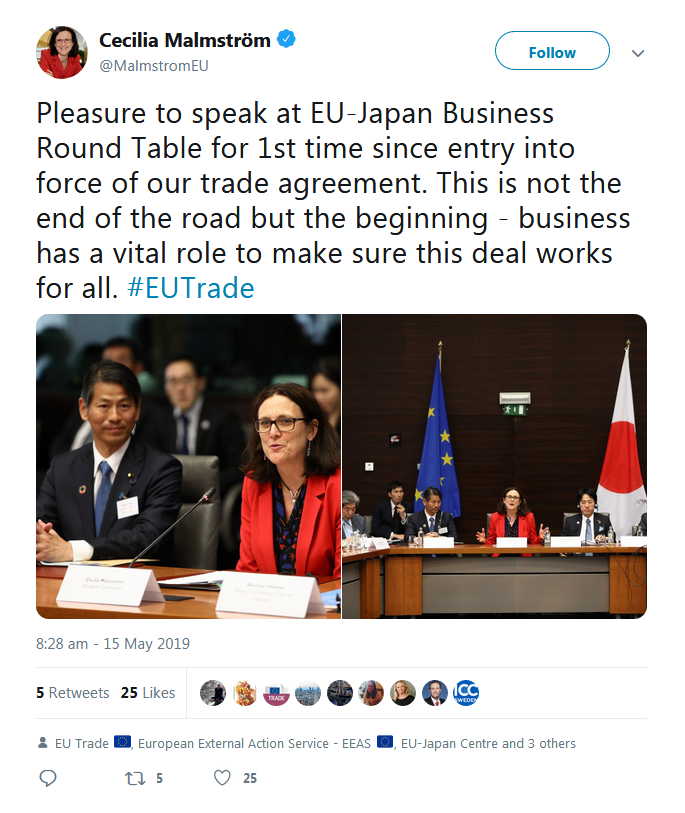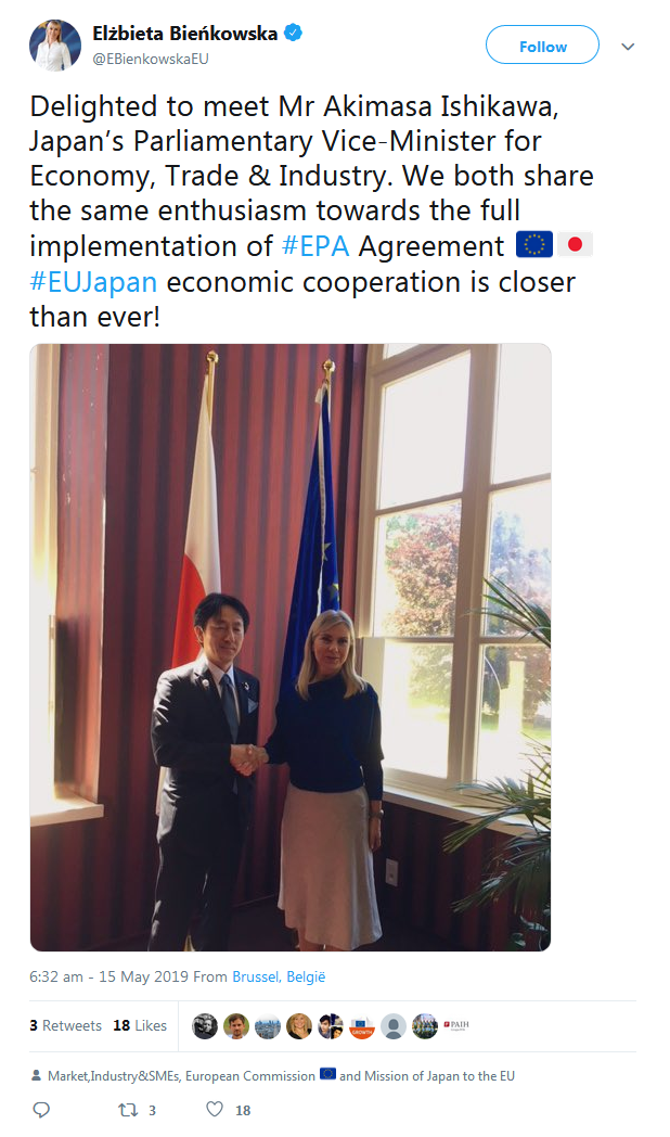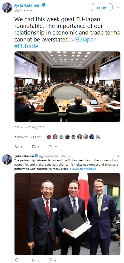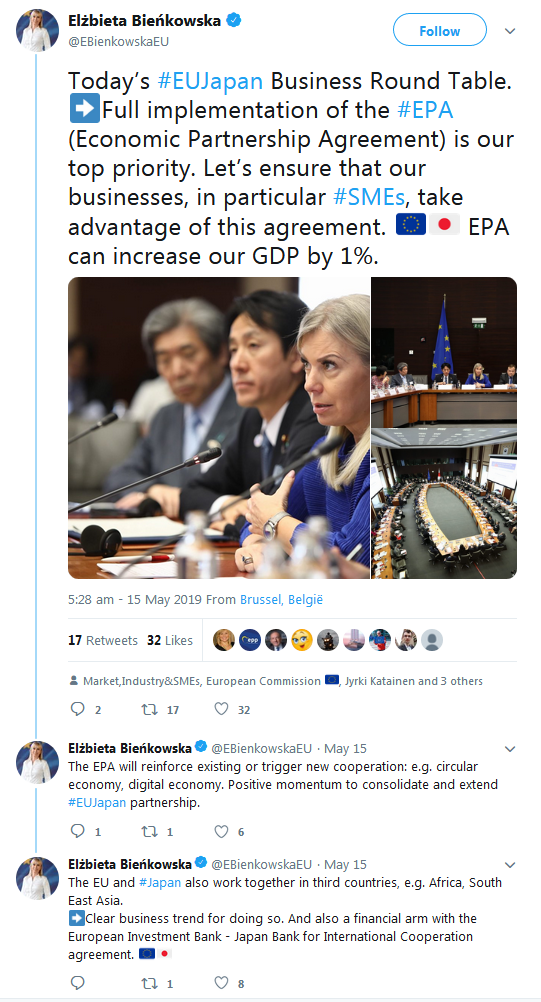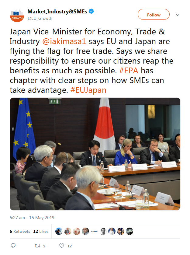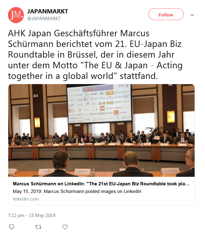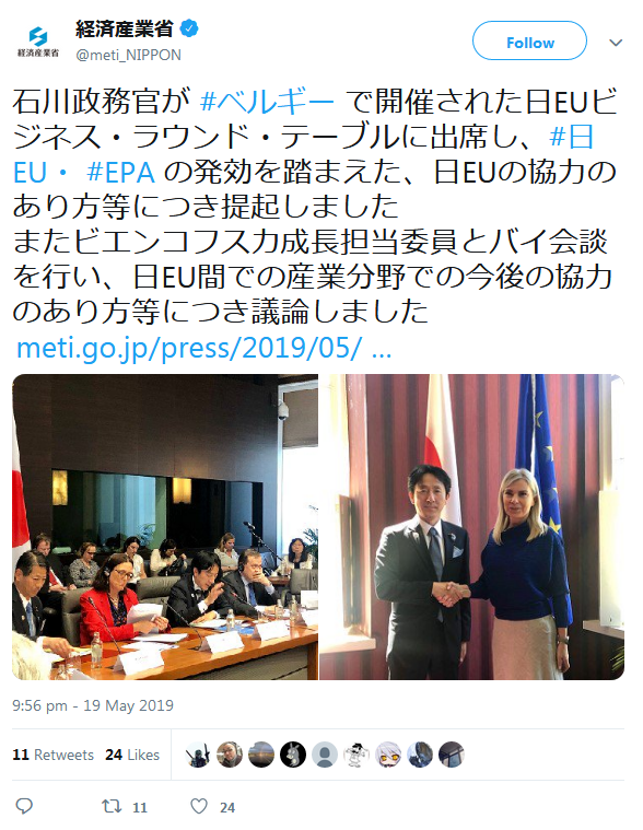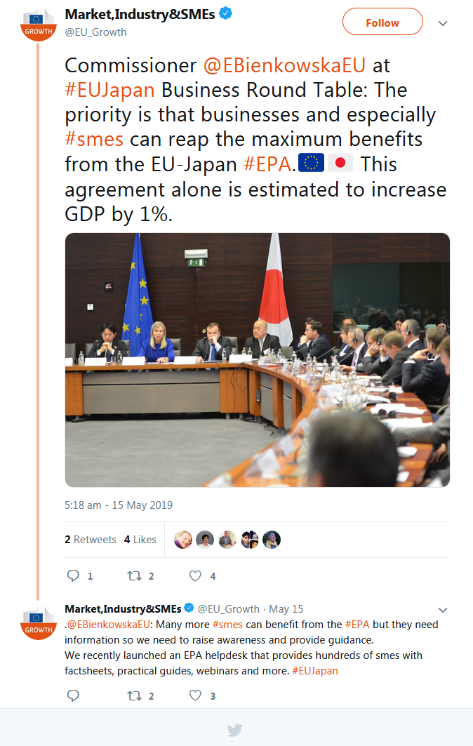 A selection of the tweets sent by the European Commission, Government of Japan, BRT member companies, the BRT Secretariat at the EU-Japan Centre for Industrial Cooperation, and others can be found below.