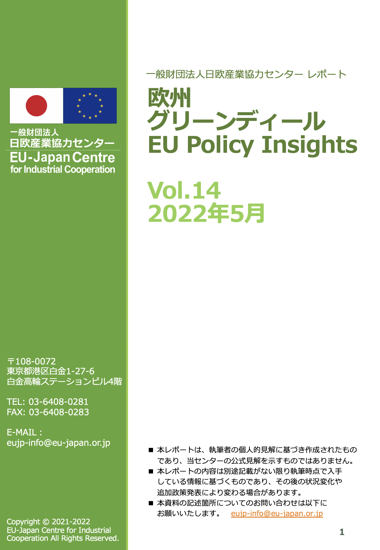 一方、日本語で最新情報を収集しようとした場合には、EU言語と比較して情報に接しづらい面があります。そこで日欧産業協力センターでは20214月より、日本語でのEU政策レポートを発行しております。