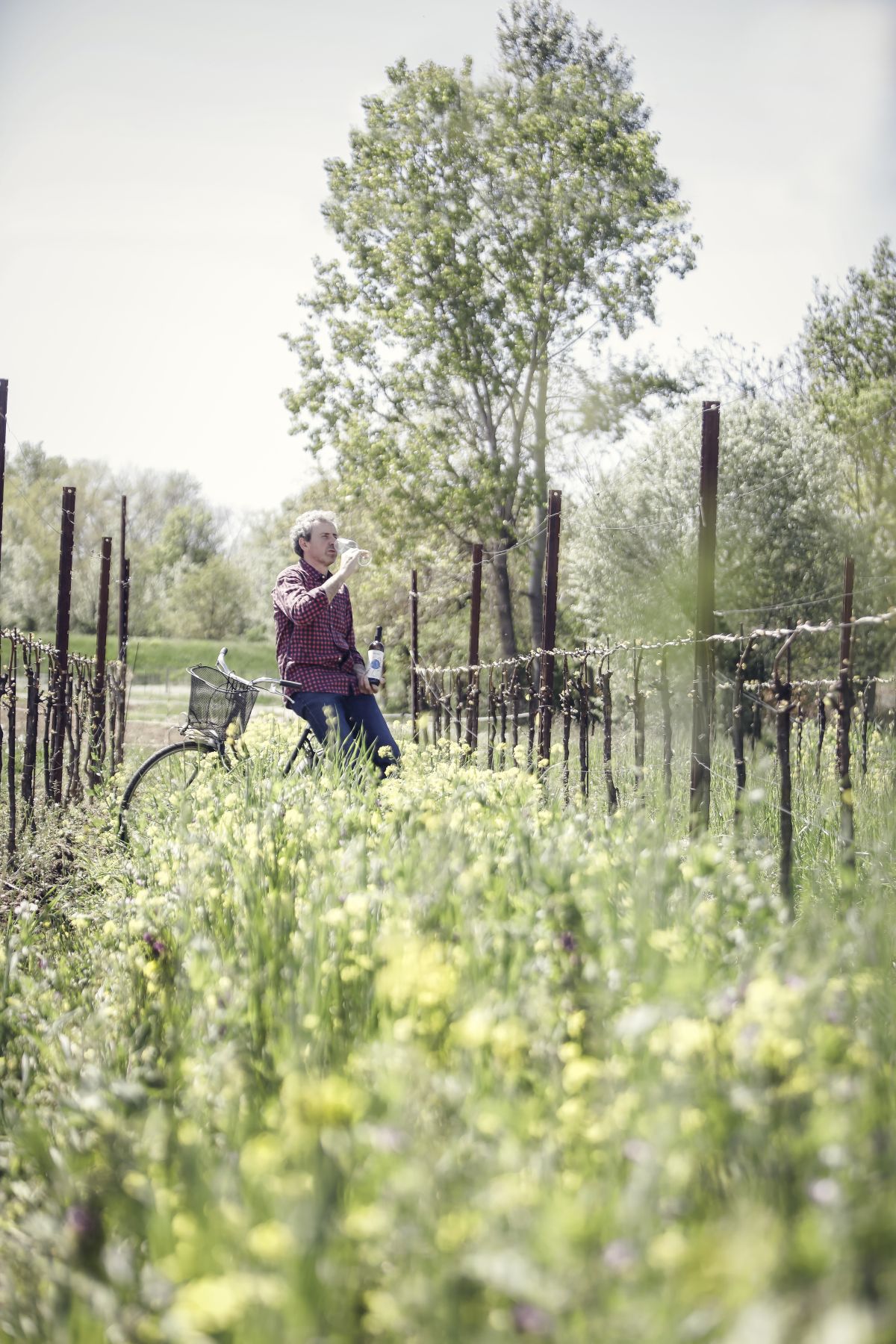 ぶどう畑は4ヘクタール。その中には樹齢50〜70年のぶどう樹もあり、背後にはアルプス山脈、正面にはアドリア海が広がり、海風と陸風の両方が吹く絶好のロケーションです。