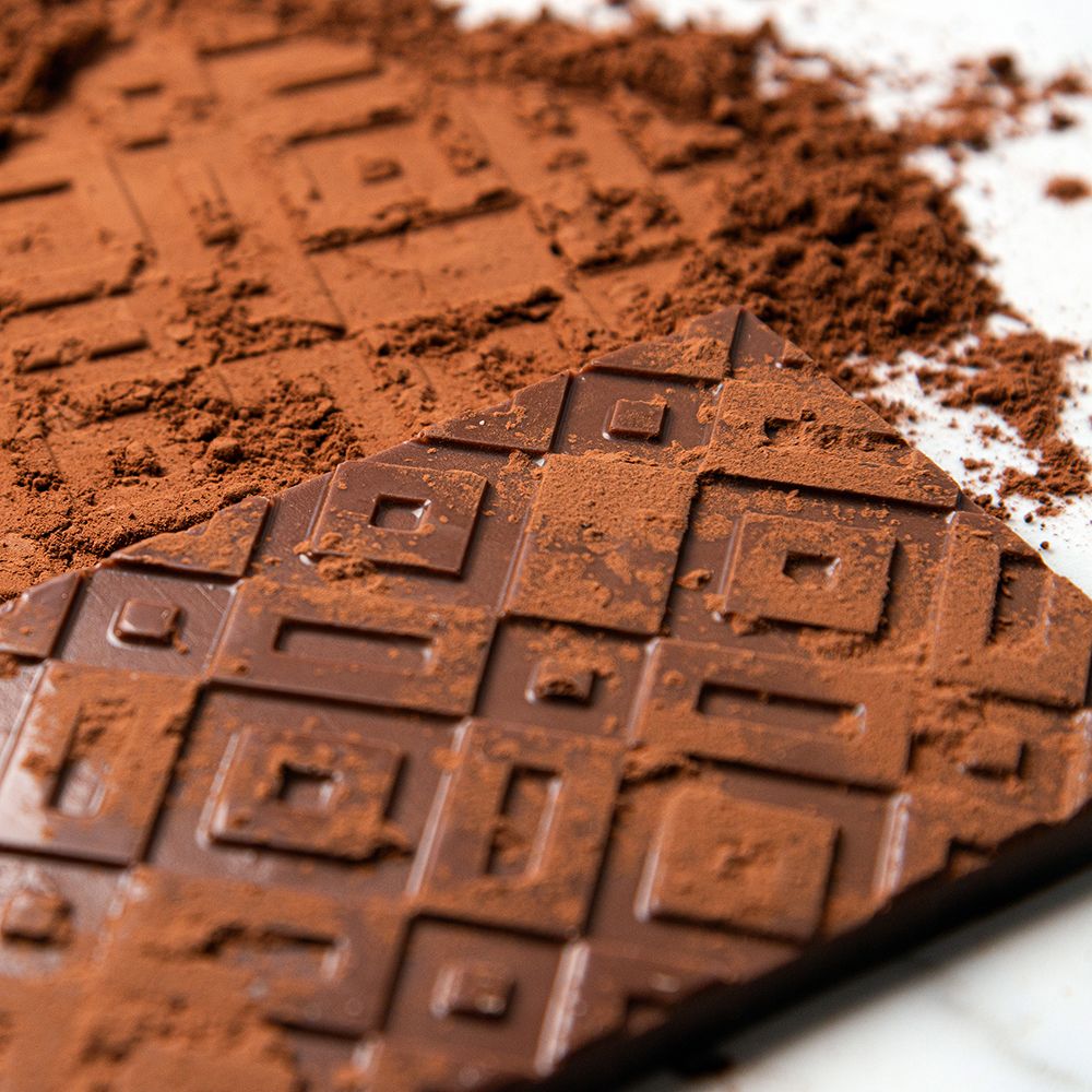 ルイ14世は、ヴェルサイユ宮殿を何百万枚もの金箔で飾ったという。この特別な性質を持つ貴金属を輝かせるため、ショコラティエは錬金術師に変身し、24カラットの金箔を散りばめた70%のダークチョコレート・バーを作りました。