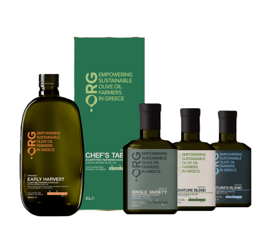 Eleologyは、ペロポネソス半島各地で収穫されたオリンピア種、コロネイキ種、クツレリア種という3種類の優れたオリーブの特長を組み合わせています。