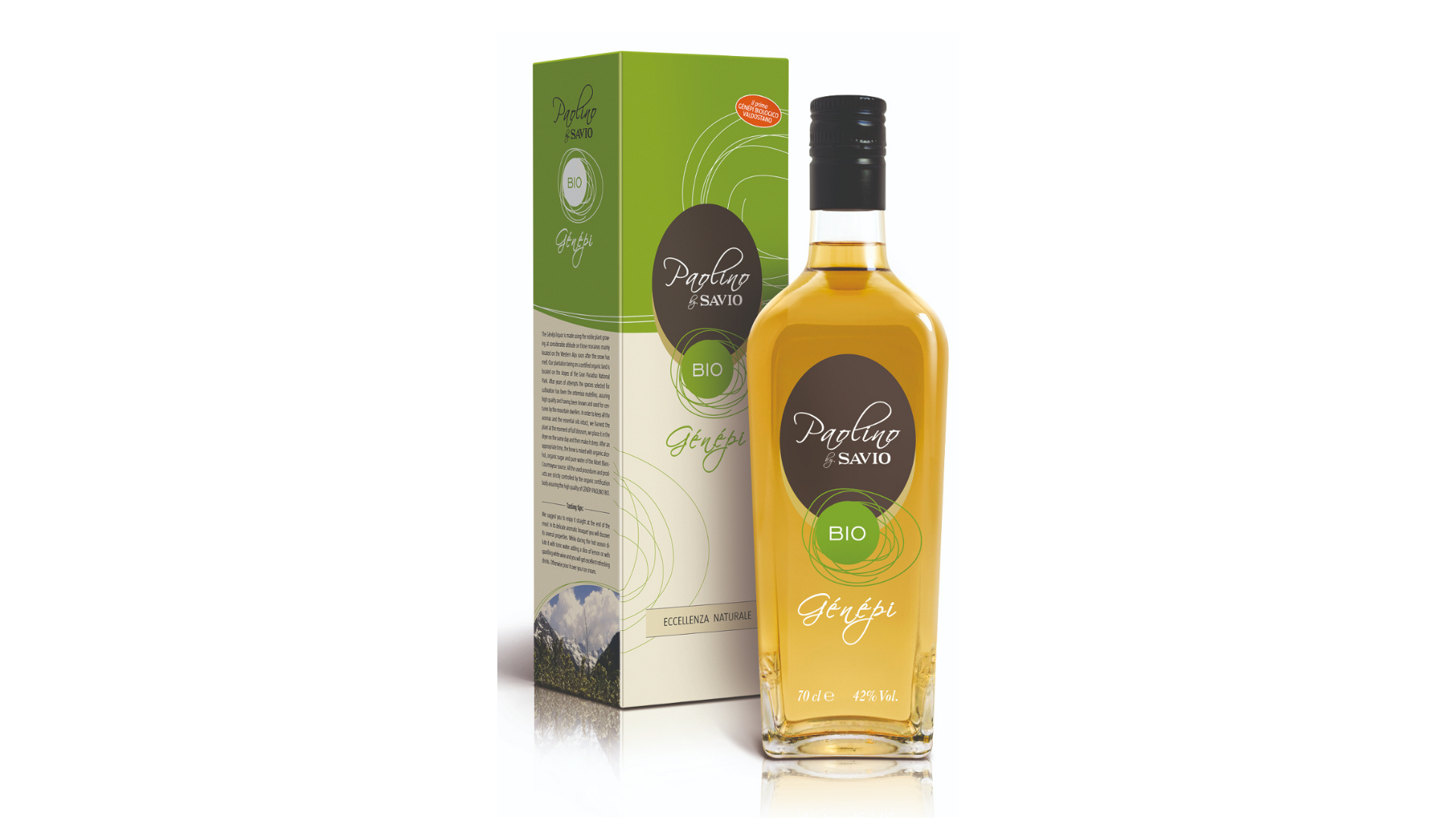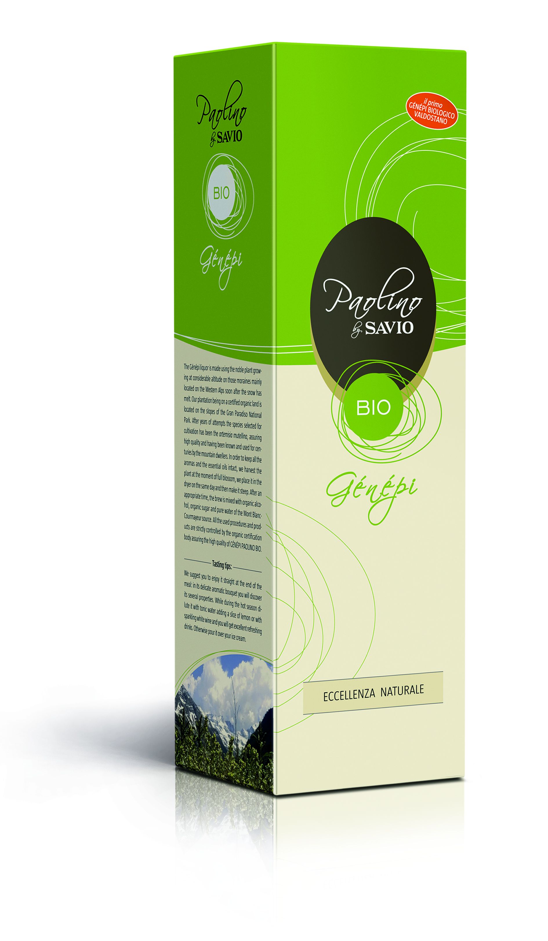 2016年にイタリア市場初のバイオ・ジェネピとして発売された「PaolinoGénépi Bio」は、Savio Srlの創業者であるパオリーノ・サビオ氏への敬意を示した特別な製品です。山のハーブ、ハチミツ、スパイスなどの独特の香りを持つこの製品は、何世代にもわたって受け継がれてきたイタリアの伝統的なレシピと、サビオ社の10年間にわたる酒類製造分野での専門知識を融合させたものです。最高級のアルテミシア(アサギリソウ)を使用しており、使用するアルテミシアはアルプス標高2000メートル以上の場所に自生する植物で、開花時に収穫されます。クールマイユールのモンブランから湧き出る清らかな水と一緒に育ち、自然の糖分を含んでいますが、製造過程でアルコールに変化します。