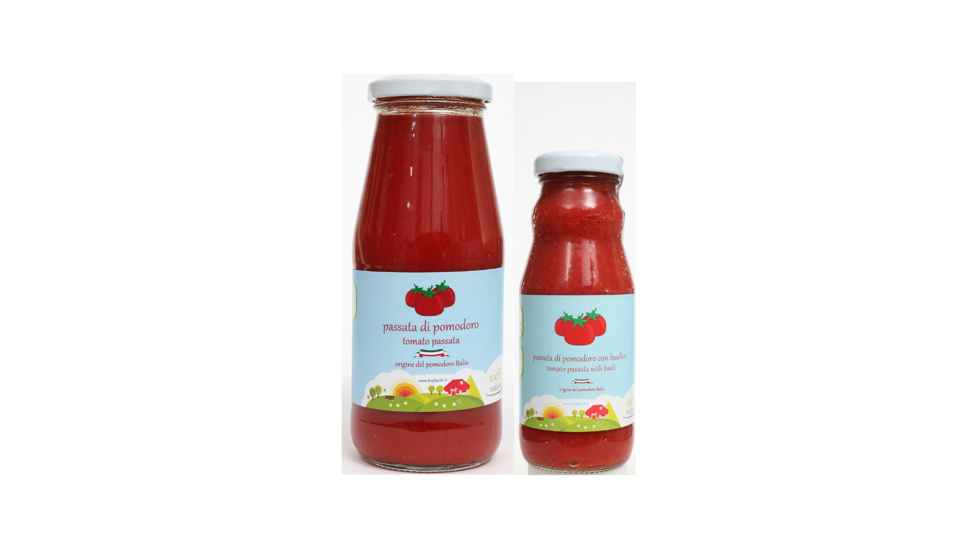 ビオファボーレのトマトパッサータは、同一の農場で栽培されたイタリア産有機トマトを100%使用したトマトピューレです。