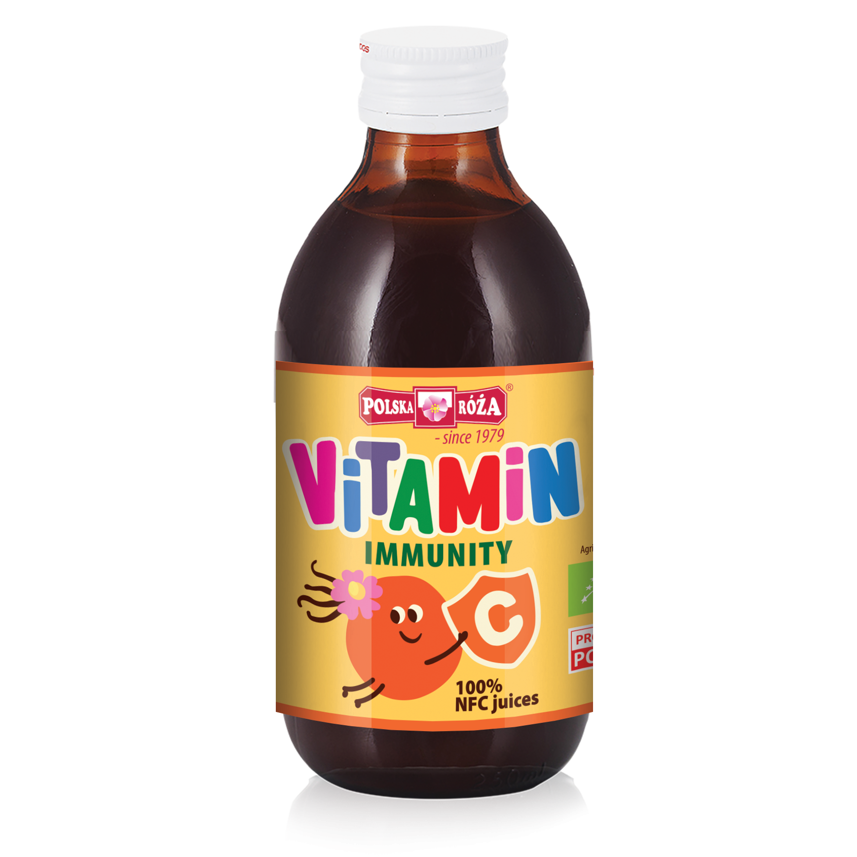 有機ローズヒップジュースは、濃縮果汁ではなく、果実から直接搾ったストレート・ジュースです。100ml中450mgの天然ビタミンCを含んでいます。果実はすべてポーランドの有機農家で栽培され、新鮮なまま手摘みされ、圧搾されてジュースになります。このようなシンプルな工程が、ジュースの品質の高さにつながっています。各ロットの製品のビタミンC含有量はチェックされ、製品ラベルに表示されています。Polska Rozaは、高品質のNFCジュースと機能性飲料の製造を専門としています。天然のビタミンCは人体にとって非常に重要であり、免疫システムを強化します。当社の製品はEUオーガニック認証を取得しています。