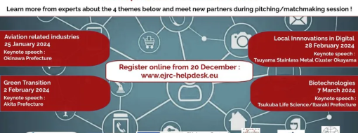 Meet Japanese Prefectures & Clusters : learn more from experts about the 4 topics and meet new partners during pitching/matchmaking session.
