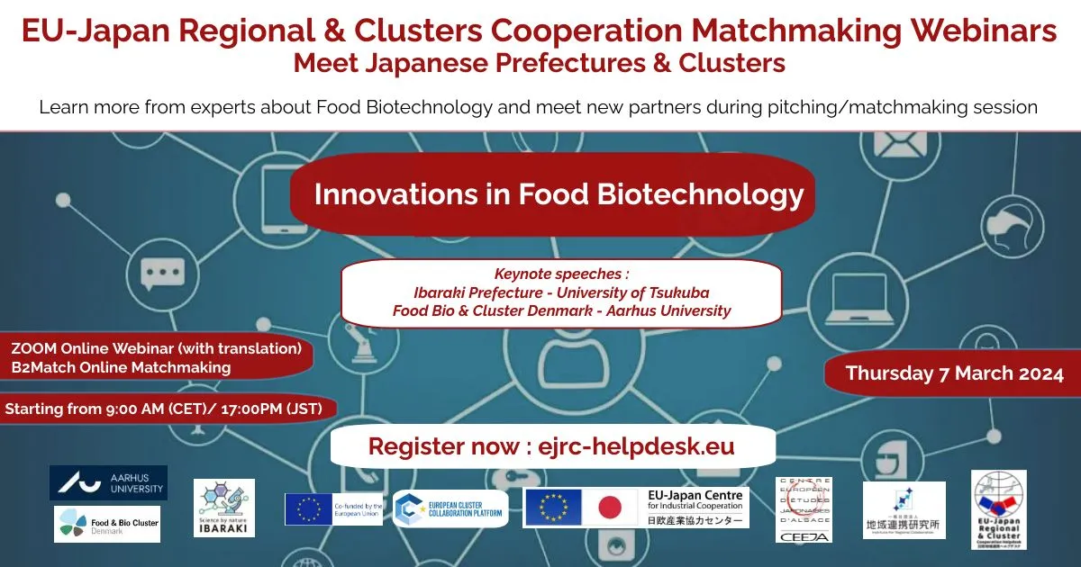 Meet Japanese Prefectures & Clusters : learn more from experts about the 4 topics and meet new partners during pitching/matchmaking session.