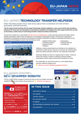 季刊ニュースレター「EU-Japan News」(英語)、セミナー等の報告書、その他出版物を通して日・EU産業協力に関するさまざまな情報を紹介しています。ニュースレター「EU-Japan News」・出版物・レポートの一覧は英語サイトの「Publications」をご覧ください。