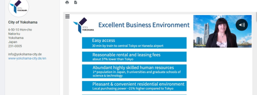 The City of Yokohama Europe Representative Office also presented itself digitally in a showcase during the four days of the fair. Admittedly, a digital trade fair is no substitute in the long term for the valuable personal encounters that can be experienced outside of pre-arranged meetings. However, the partnering tool made it easy to arrange virtual meetings in zoom rooms through automated time slot distribution.