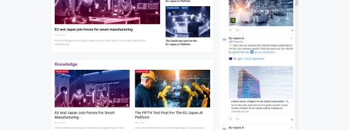 The EU-Japan.AI project currently undergoes the 9th month of its duration, where the main aim is to establish and stimulate long-term cooperation between EU and Japan in areas relevant for AI-driven innovation in manufacturing. Here, a platform-based approach will allow to connect all relevant stakeholder groups from both Europe and Japan. The initial version of the platform is currently in its pre-release stage and consists from the following 3 main modules: